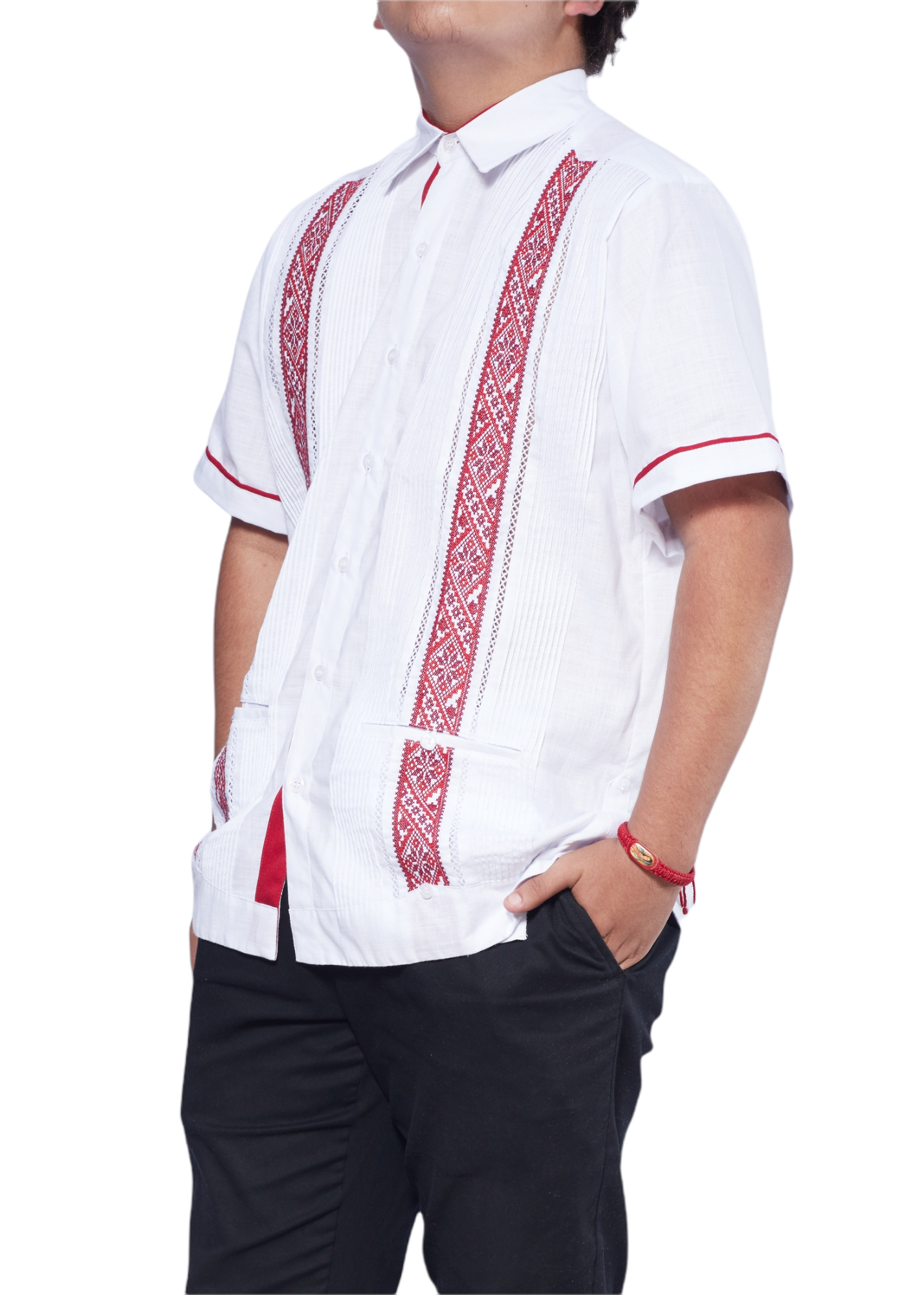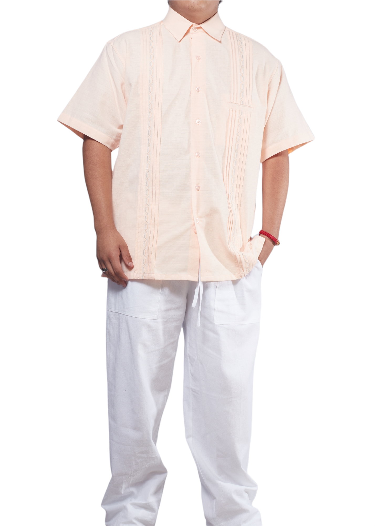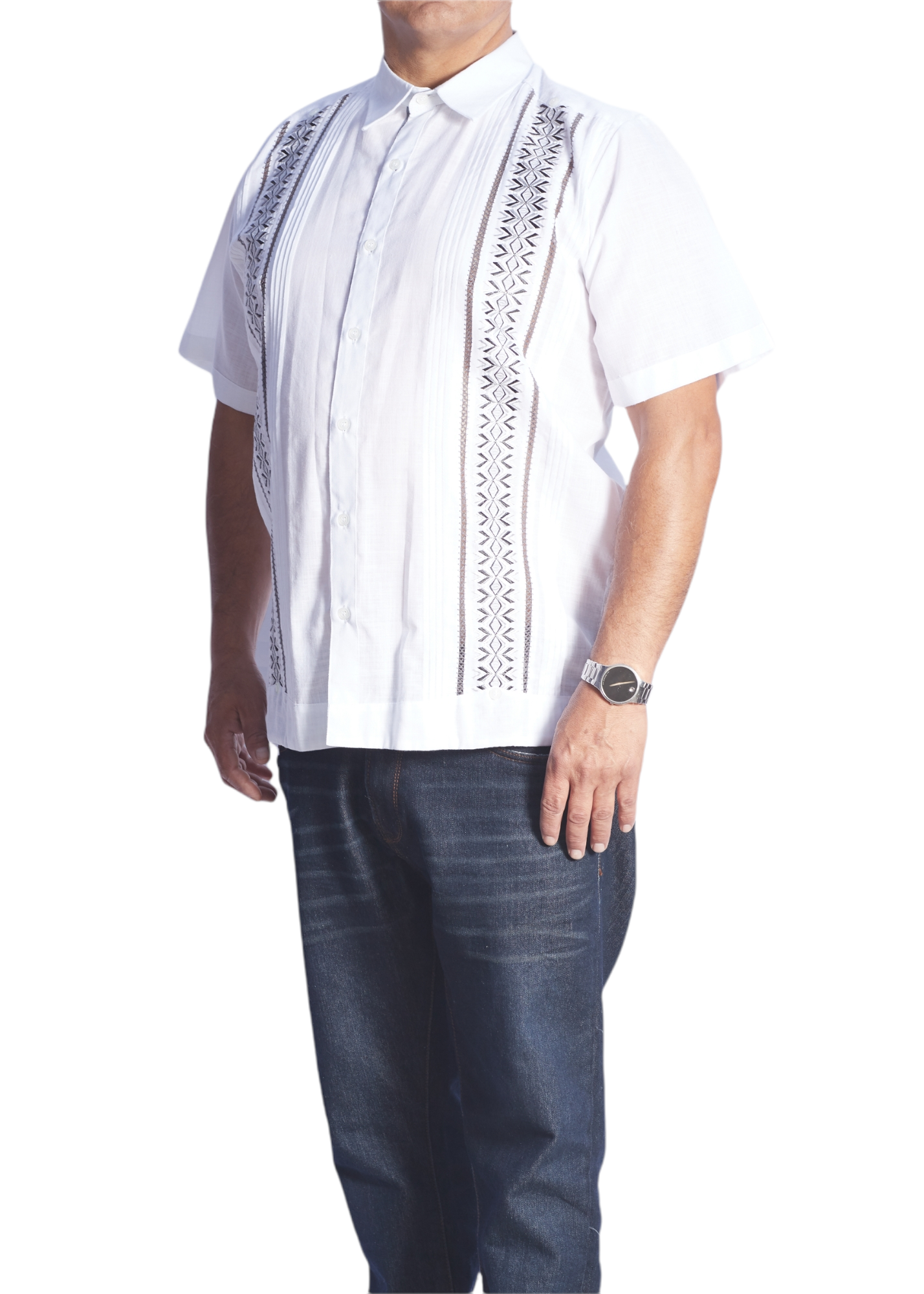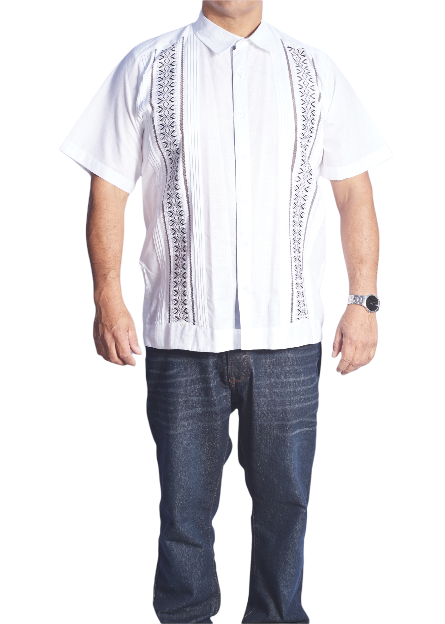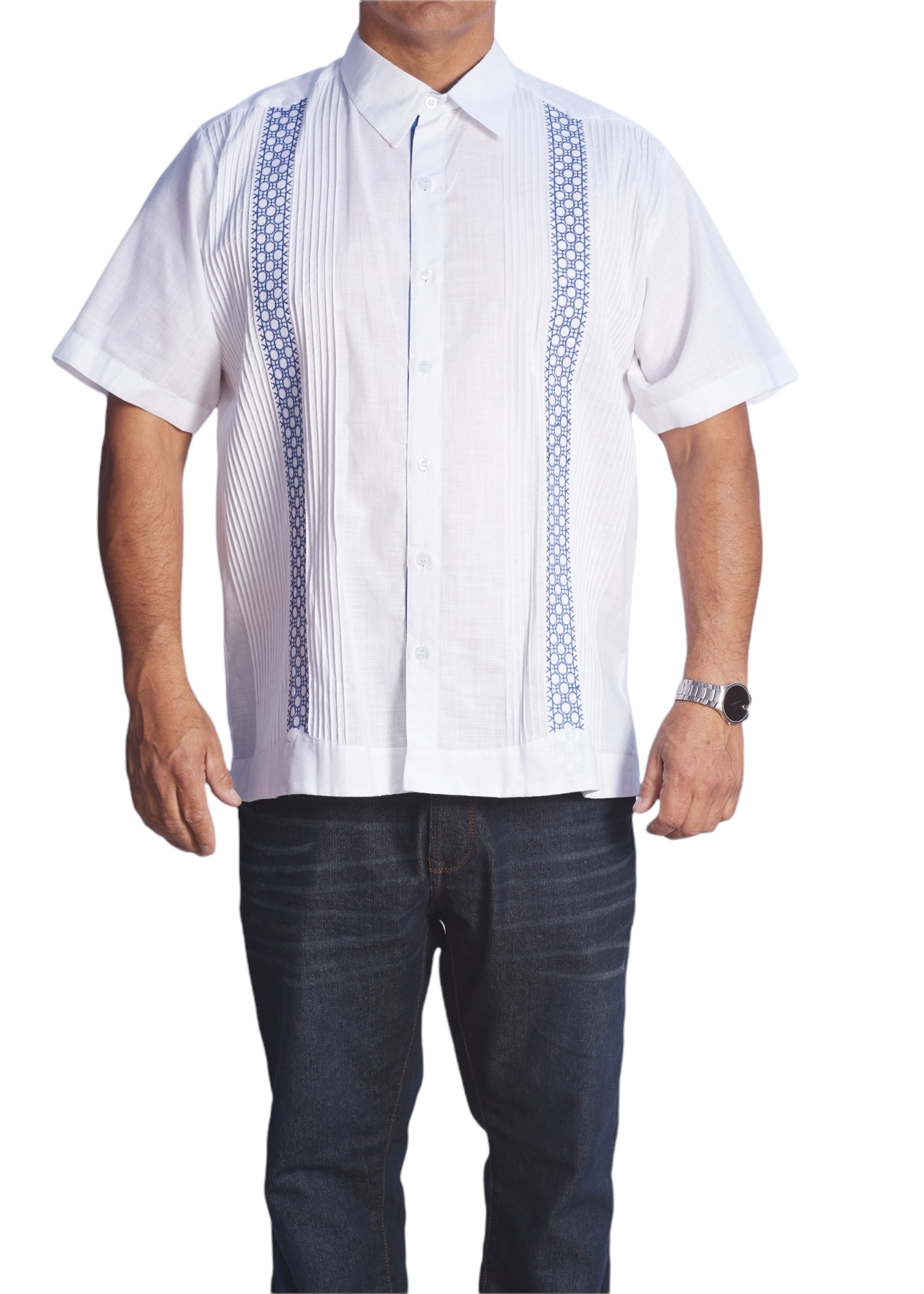 Elegant Guayabera, Handmade artisan designer embroidery formal dress shirt for men. Lightweight cotton fabric keeps you cool in the tropics. Embroidered cross stich, colors and designs may vary slightly since these are all handmade. Suggested to dry clean.