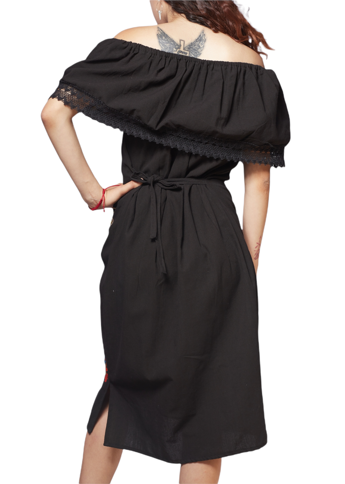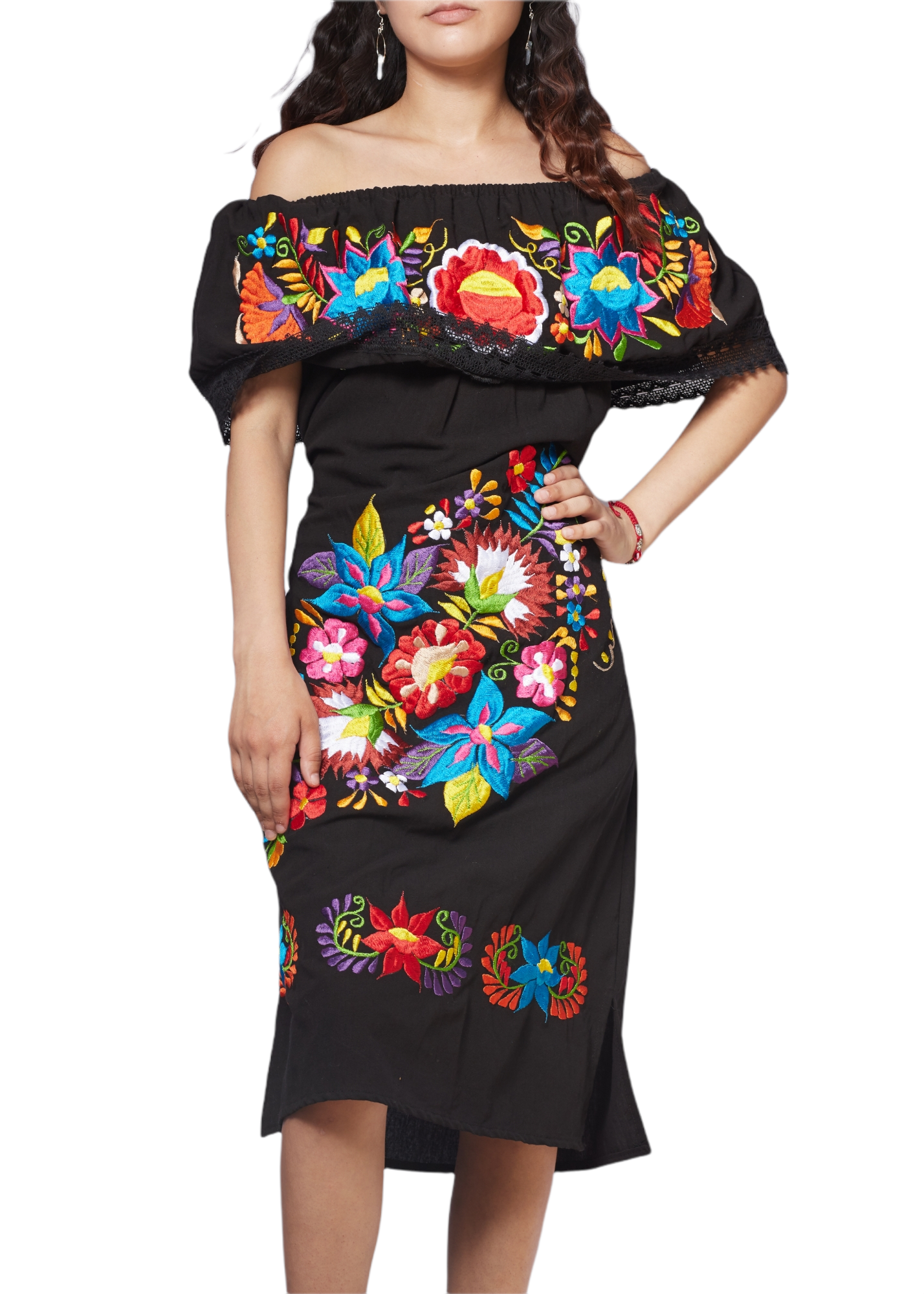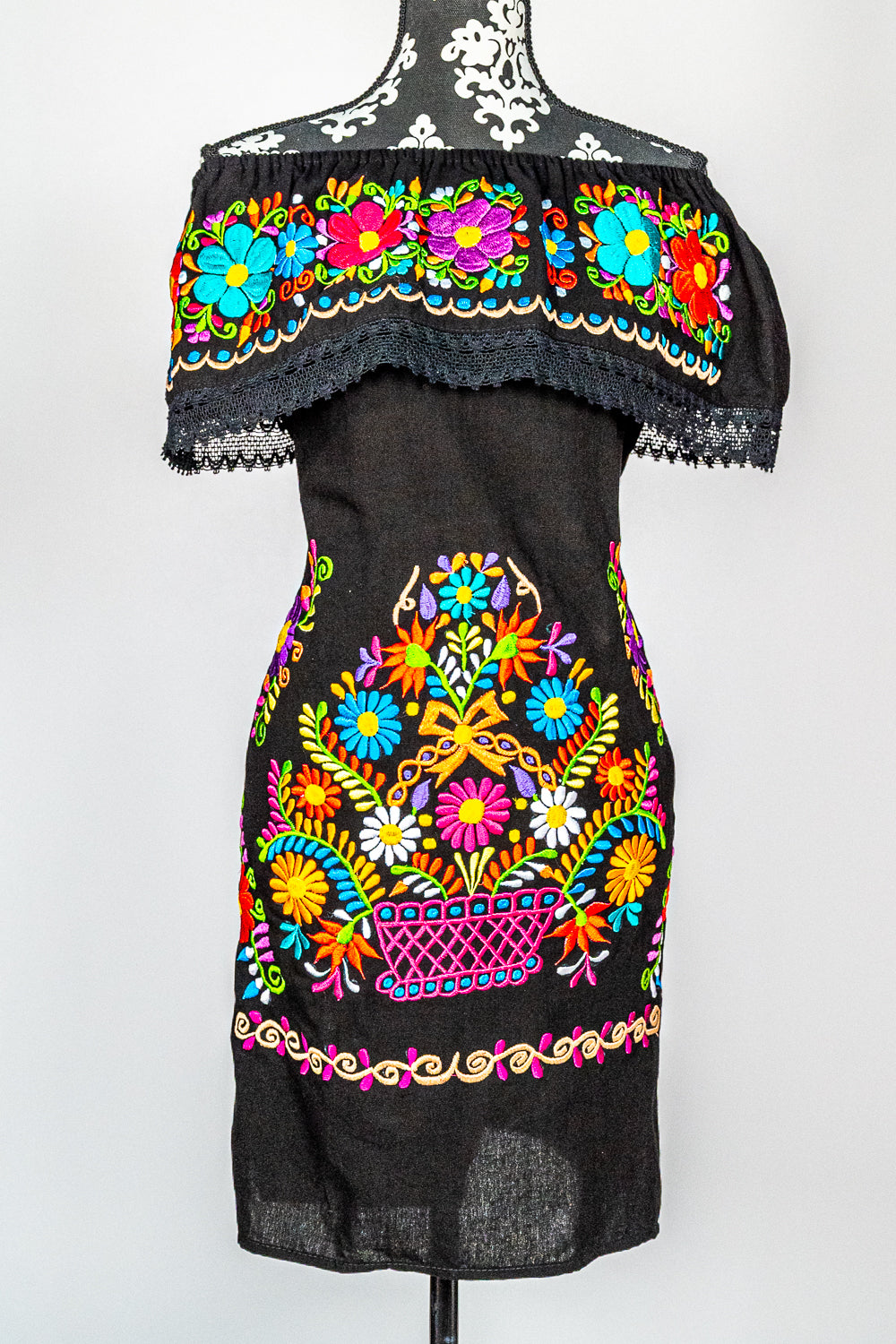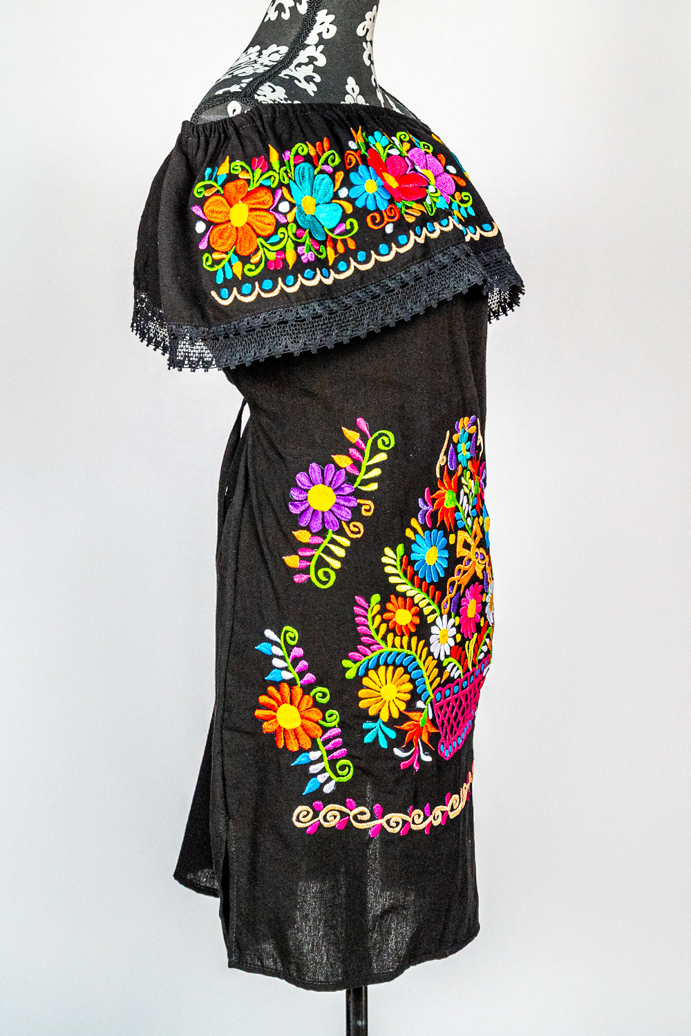 This beautiful floral embroidered dress is perfect for everyday use or a special event. You will love the vibrant colors. The flowers are embroidered with threads that create a vibrant color and make it a unique design. Each dress has a unique embroidery so colors may vary. Materials: Cotton, Embroidered with silk threads.