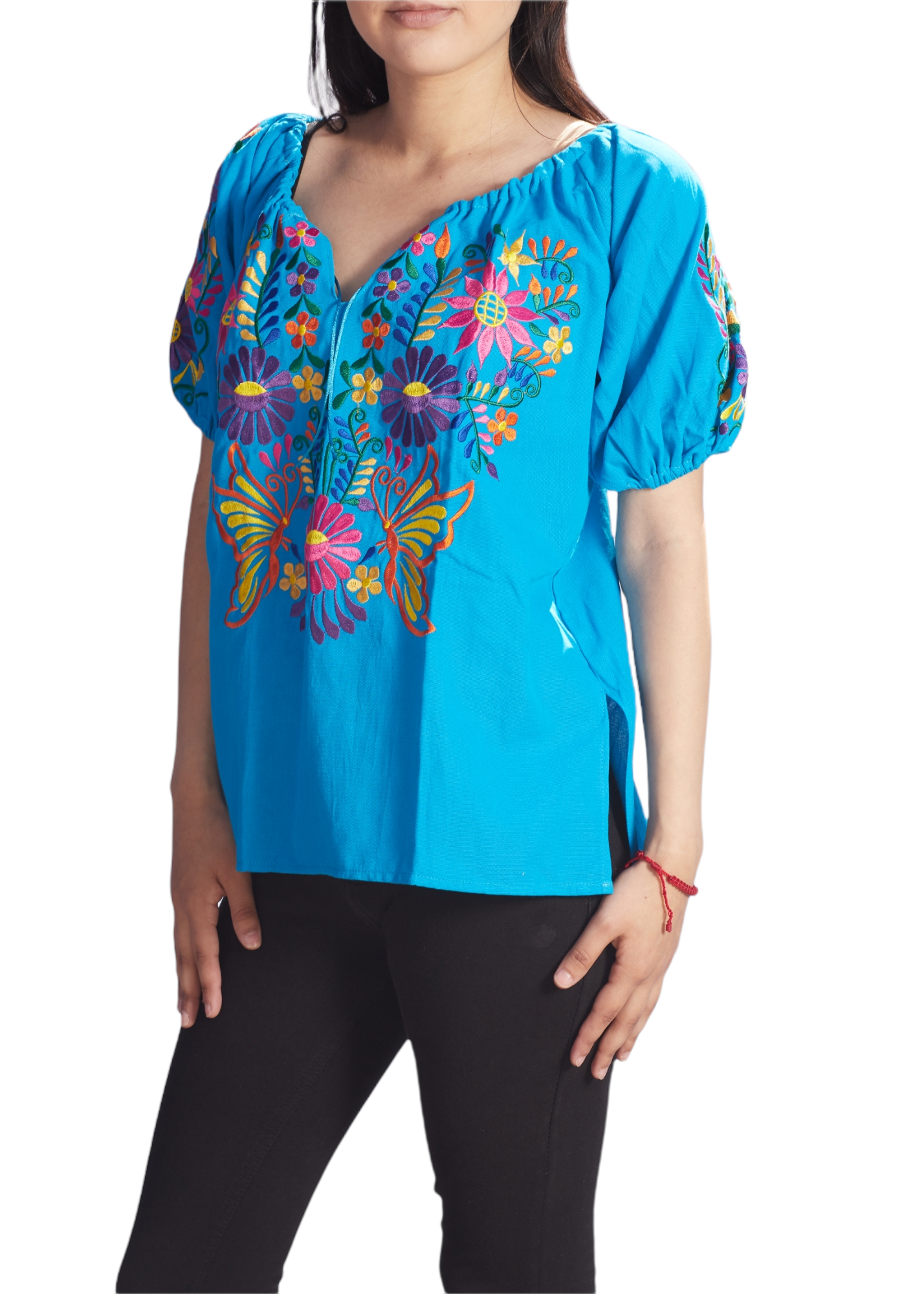Embroidered with silk threads. Material: Cotton/manta great for the cold and summer. Resistant to all temperatures. Dry clean recommended to preserve color and stitching.